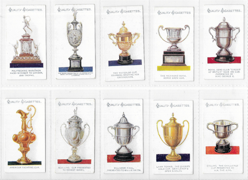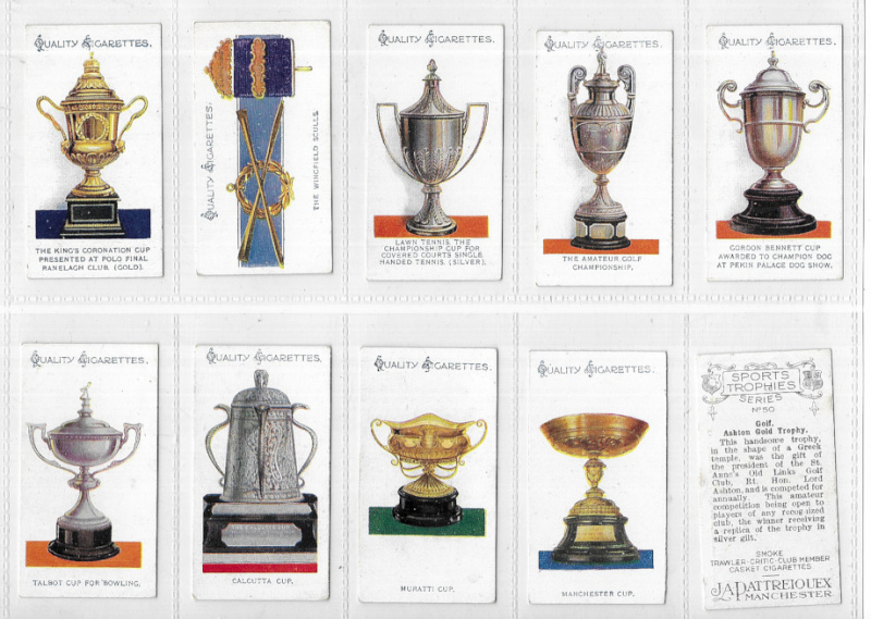 Pattreiouex Sports Trophies 1931, the set of 50, mostly VG or better. #21 with faint crease, several excellent including #23 Baseball. (50)