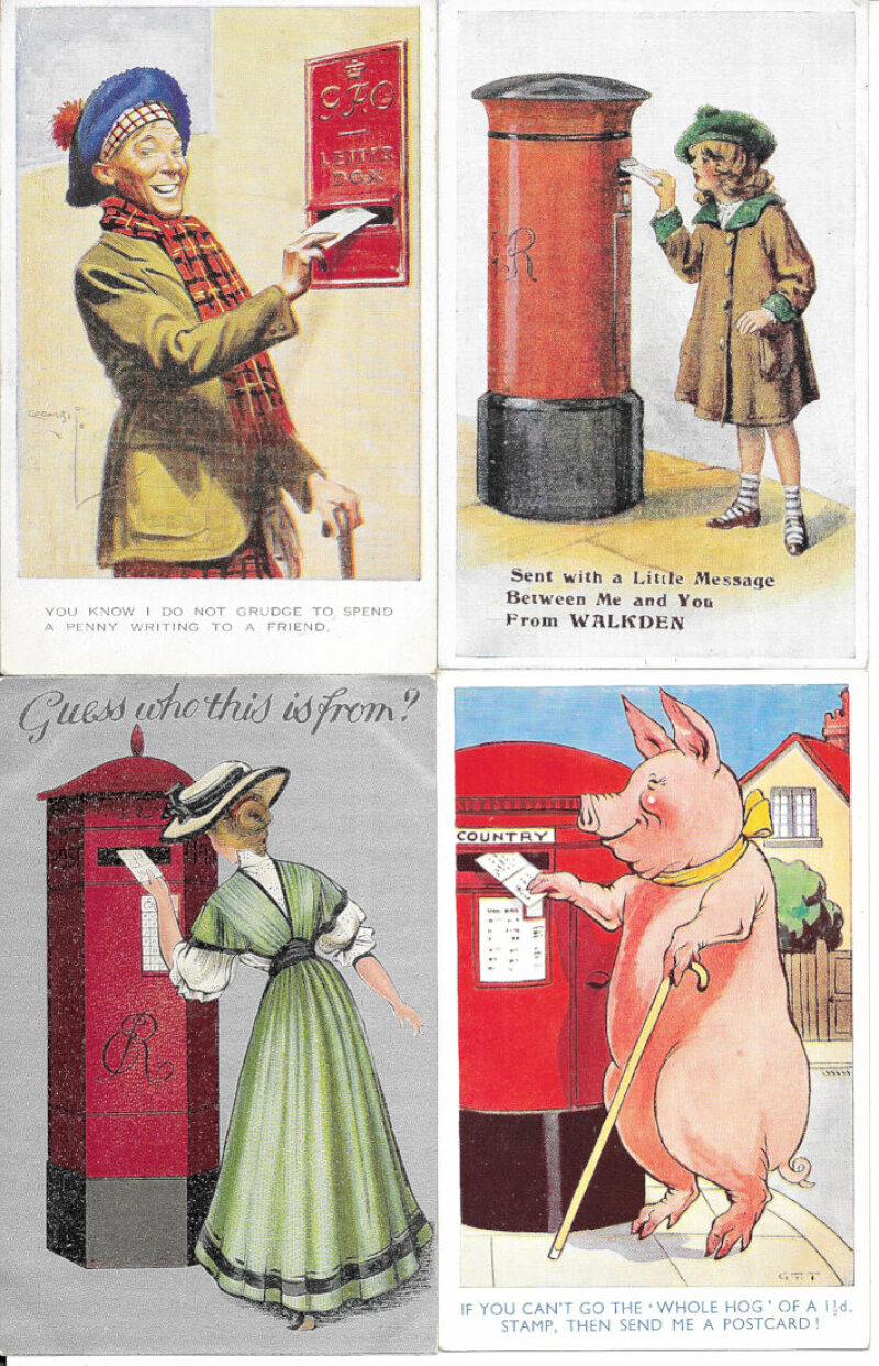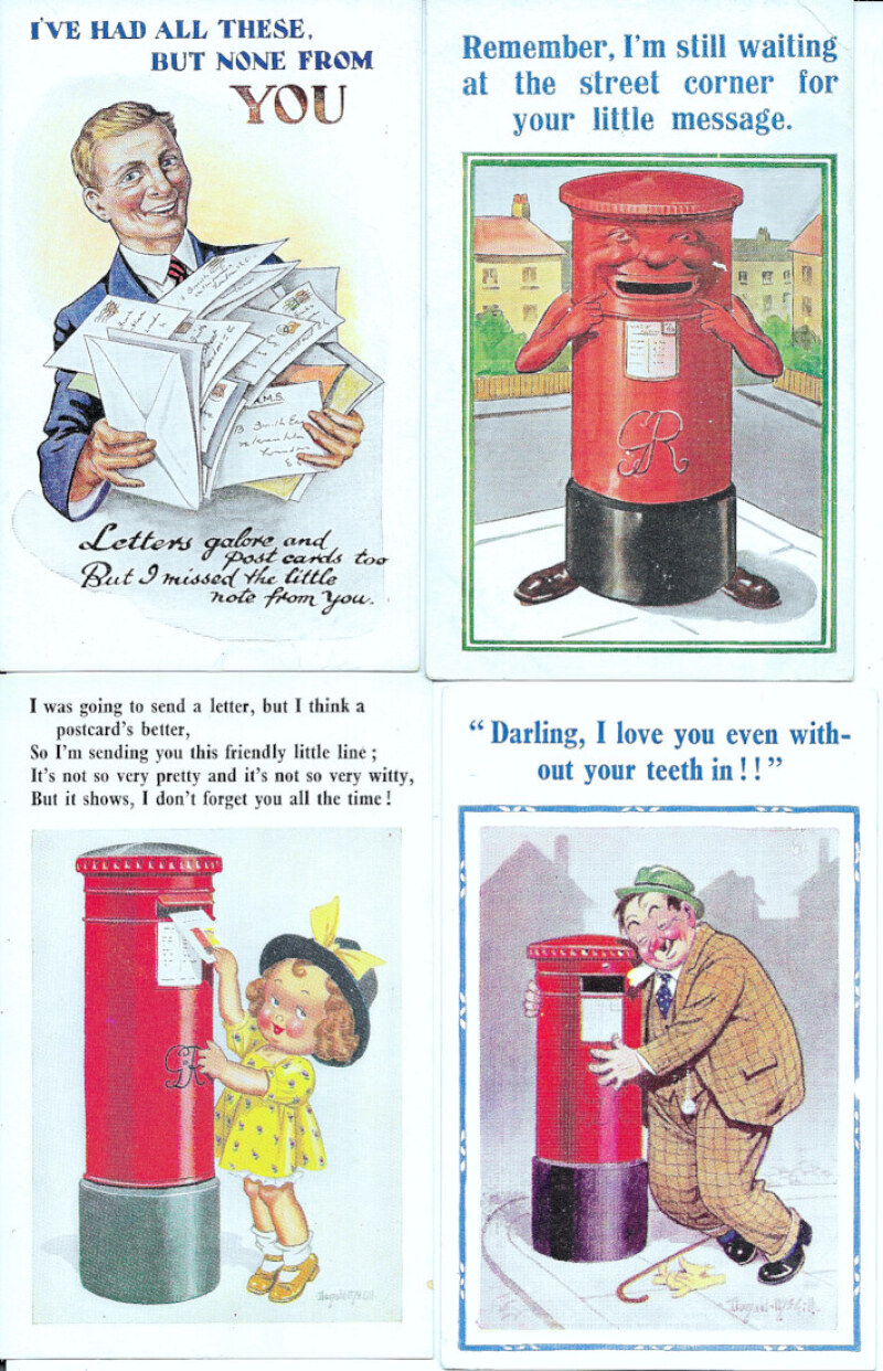 Pillar Boxes and some other postal themes: a collection 1900s/1930s, mainly humorous including Donald McGill (12) and other named artists.