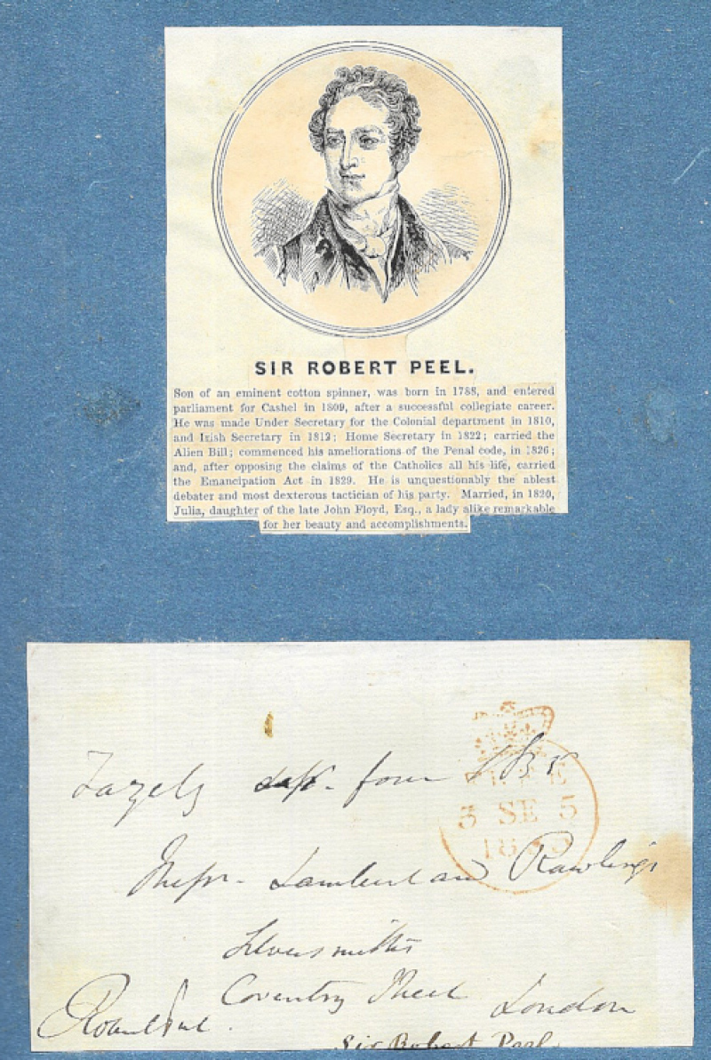 Political autographs, largely 1790s to 1840s, and mostly ‘Free' fronts laid down in a makeshift album plus few letters; including Robert Peel, Lord Palmerston (ALS), E.L. Bulwer, William Cobbett, Joseph Hulme, Lord Holland (William Pitt), Earl of Derby, etc, some with nice postal markings. Also few engravings. (around 80 autographs).