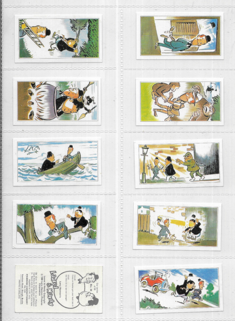 Primrose Confectionery Laurel & Hardy 1968, the set of 50, excellent condition. Printed on normal card, not the ‘paper thin' reprint.