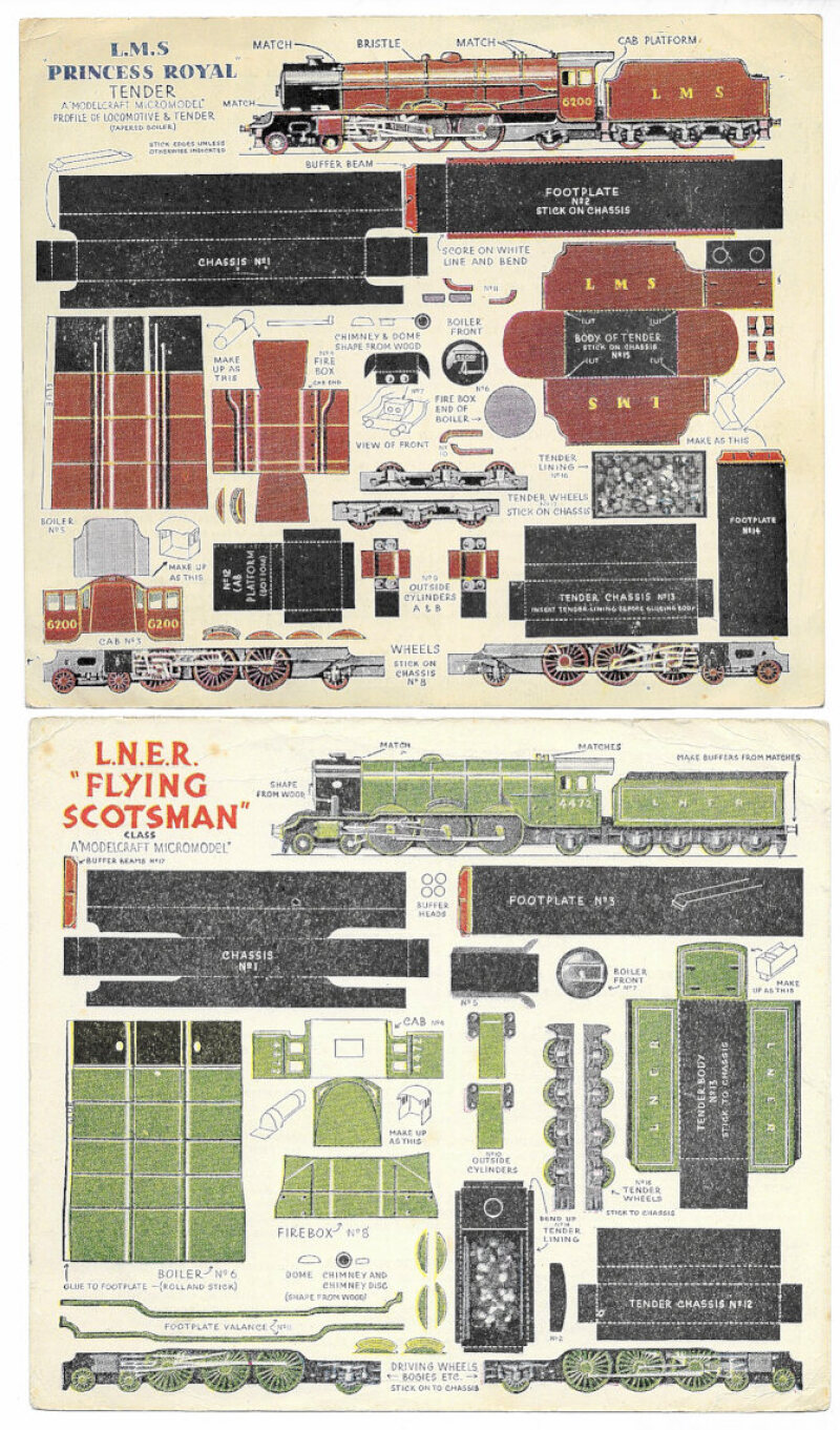 Railway softbacks & juvenilia including Rev.W.Awdry Gordon the Big Engine & His Tender pre-cut Model Engine Book; T.A.C. Jarrett Big Bill & Little Bill and The Silly Stoker; a Tuck's Train Travel transfer book; cut-out model cards of The Flying Scotsman and Princess Royal; and other items including some modern prints. (Qty).