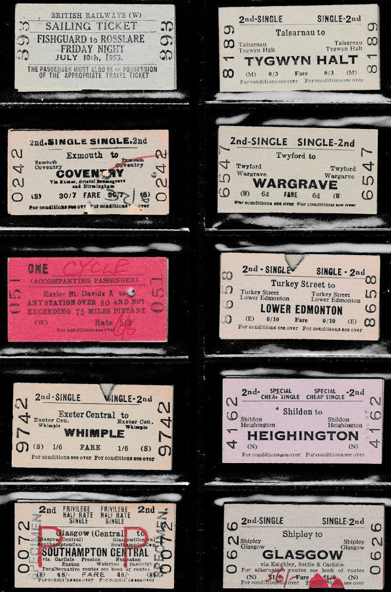 Railway Tickets 1940s to 1960s, largely post 1950 BR but including some GWR & Southern,