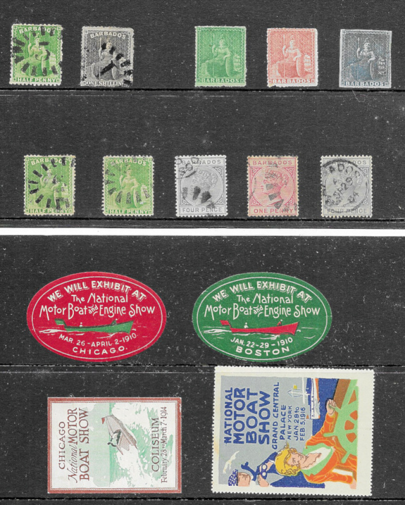 Ranges on leaves & stockcards with better items of USA, New Zealand, Australia, Barbados and Austria; several attractive Poster Stamps, and assorted other items. (abt.100)