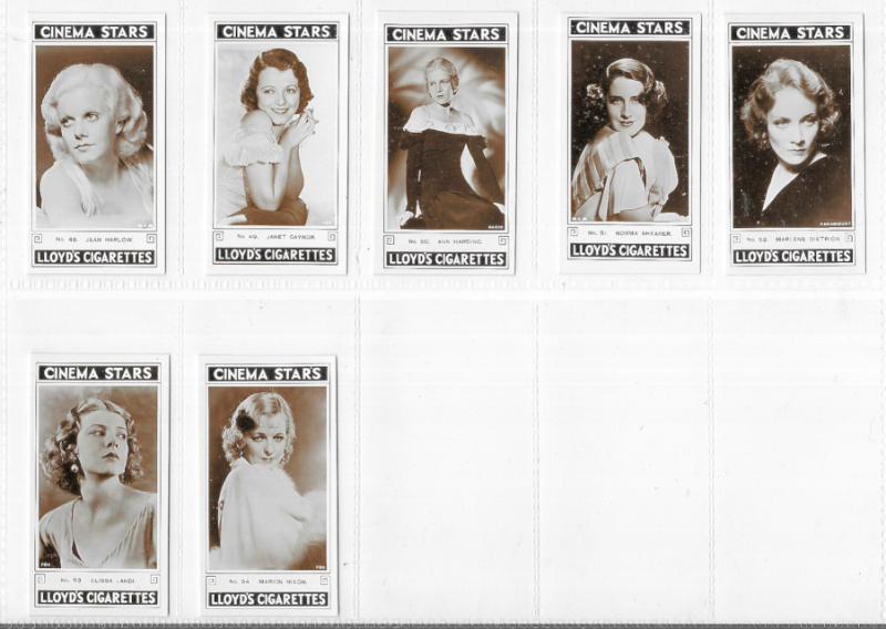 Richard Lloyd Cinema Stars #28 to 54, including Garbo, Dietrich, Clark Gable etc, excellent condition.