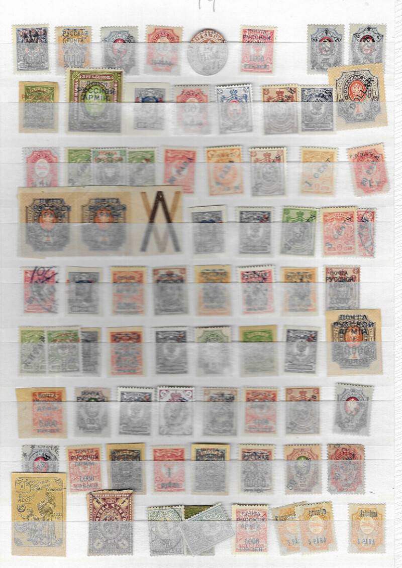 Russia early to modern M&U and UM ranges in stockbook, with main interest in 1900-1922 including post offices abroad and revolutionary overprints.