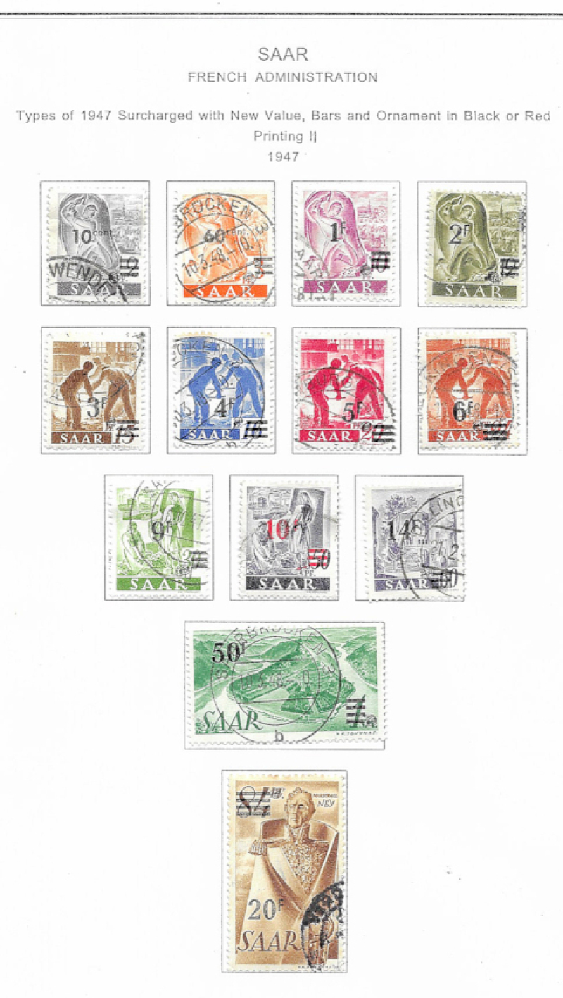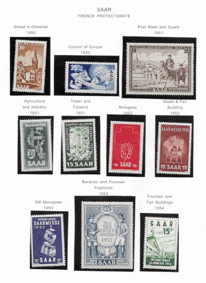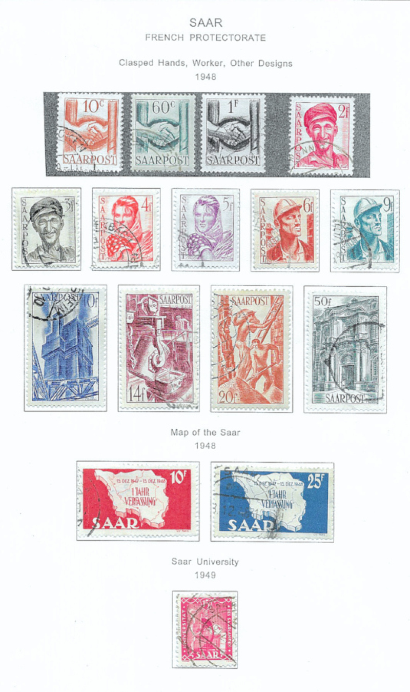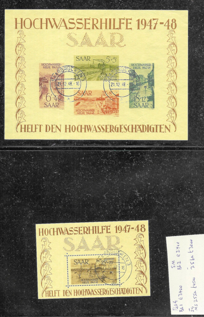 Saar 1947-1959 very good collection on leaves, both mint and used, with definitive sets, scarcer charities, miniature sheets (4), etc. Much of the mint UM. Cat (Michel 2023) Euro 13,000+