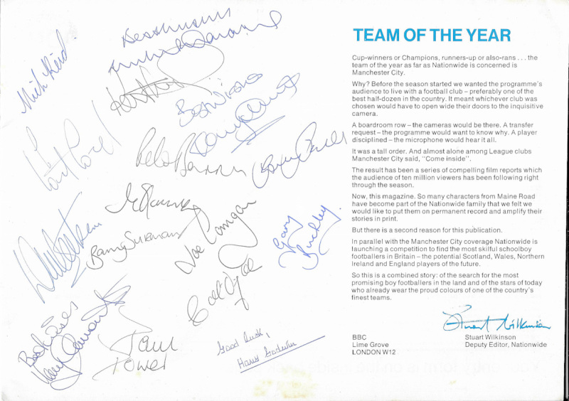 Saturday Heroes – Manchester City F.C., 1977, autographed by 16 members of the players and staff. Published by the BBC. Landscape A4, softback. VG