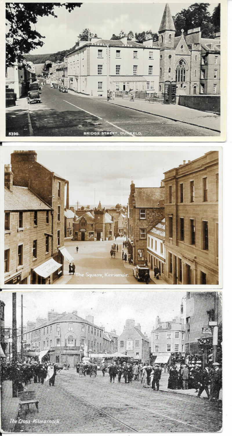 Scotland topography, an accumulation in plastic sleeves, mostly 1900s to 1940s, with some street scenes noted. No Glasgow or Edinburgh.