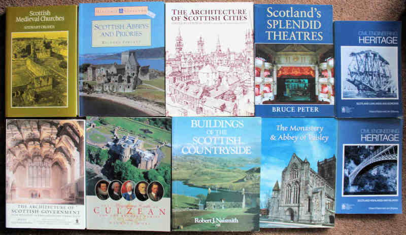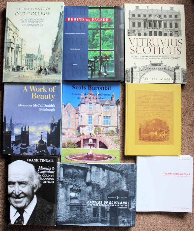 Scottish Architecture and construction including Moss The Magnificent Castle of Culzean 2002; Davis Scots Baronial 1996; Paxton & Shipway Civil Engineering Heritage 2008 (2 volumes); and Tindall Memoirs & Confessions of a County Planning Officer 1998. Fine lot. (19)