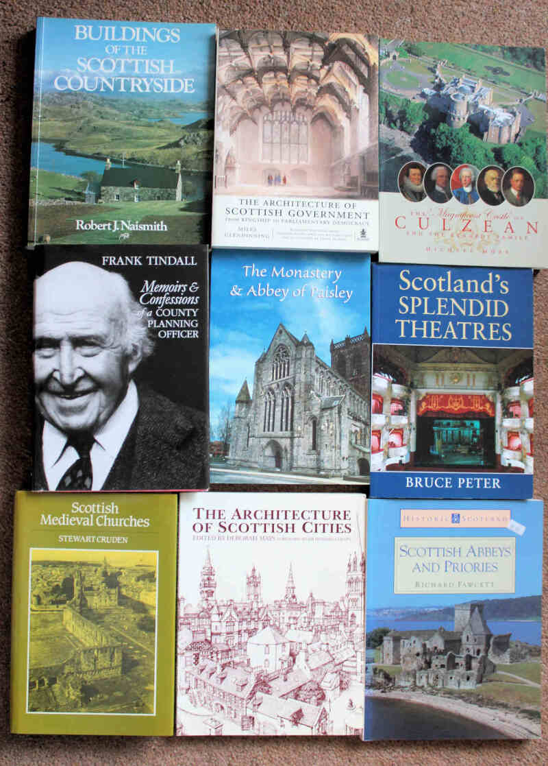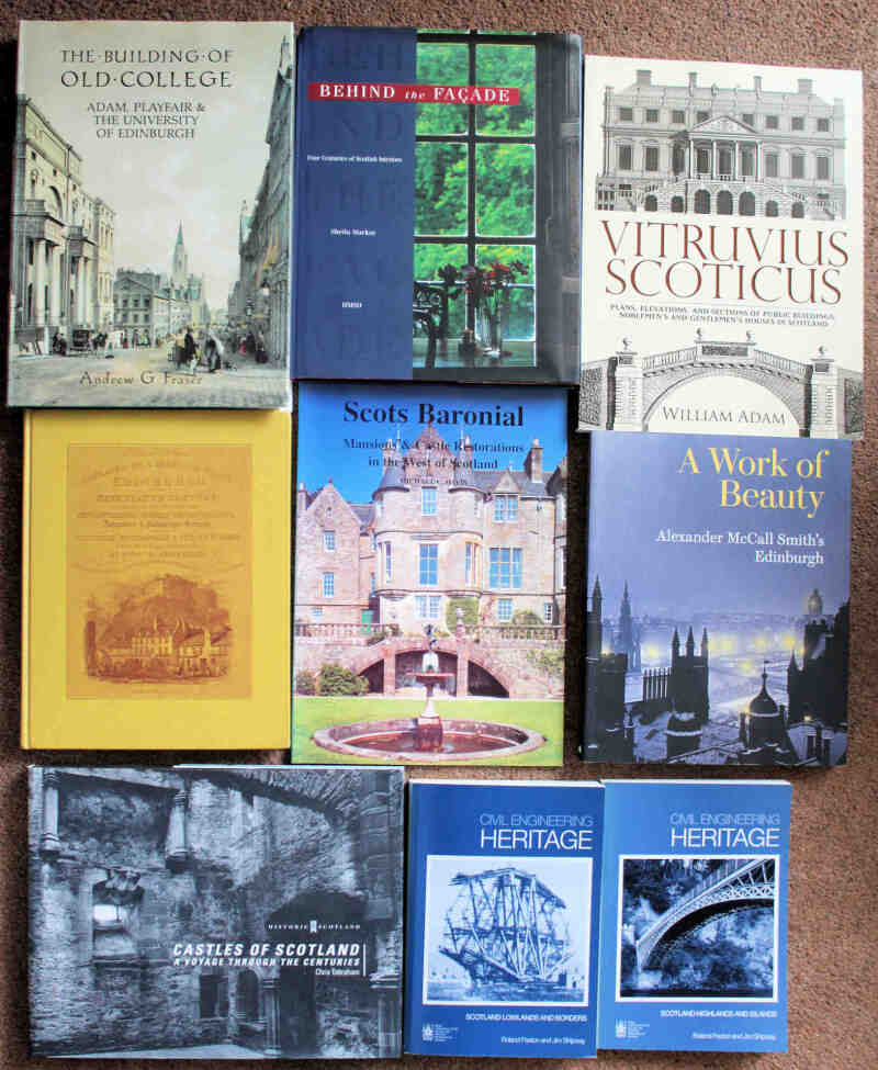 Scottish Architecture and construction including Moss The Magnificent Castle of Culzean 2002; Davis Scots Baronial 1996; Paxton & Shipway Civil Engineering Heritage 2008 (2 volumes); and Tindall Memoirs & Confessions of a County Planning Officer 1998. Fine lot. (19)