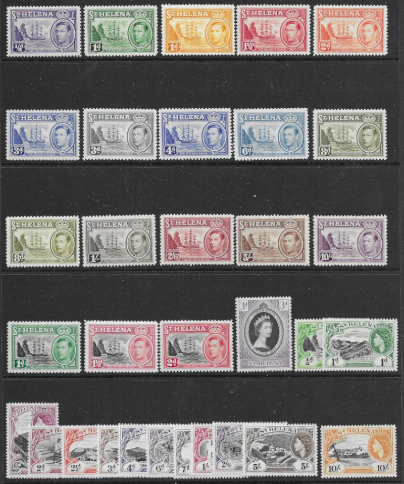 St. Helena 1863-1957 fine mint range on stockleaves, with several UM. Includes 1853 1d lake (SG 3) good margins, later QV surcharges to 5s, and key plates to 10d; EVII to 6d; good GV with Badge of the Colony issues to 7s6d, and Centenary 2s6d; plus GVI & QE2 complete. Cat approx £1680. (105)