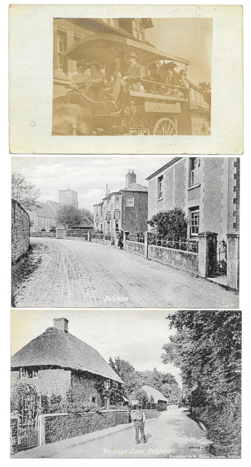 Sussex & Kent 1900s/1930s, mainly coastal towns; includes RP of Excelsior horse-drawn omnibus at Margate 1908 and some street scenes. Many PU.