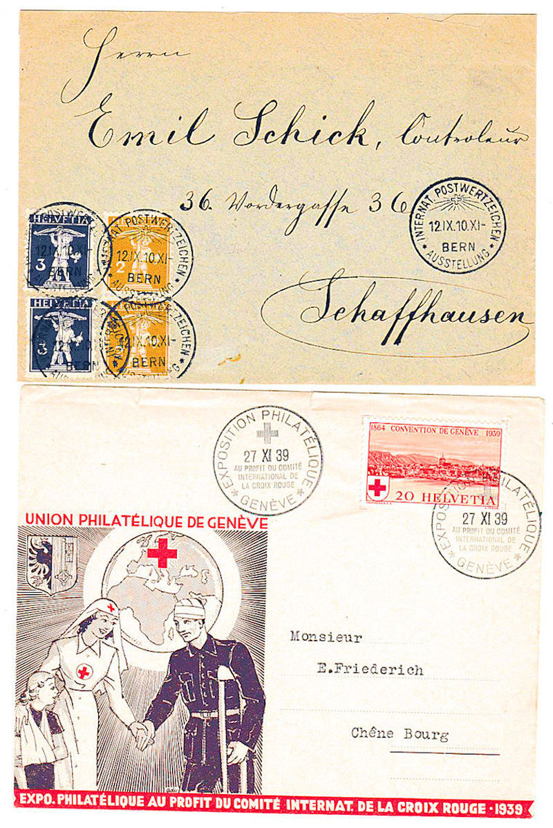 Switzerland 1900-2000 collection of Covers & Cards in album, mostly bearing Special Handstamps, with better items noted. 22 are pre-1940. Also few non-related covers. VG/VF (102)
