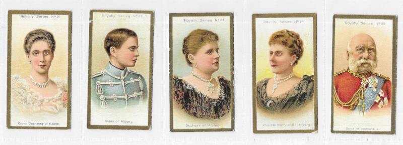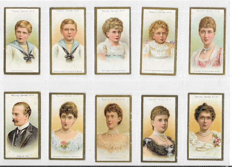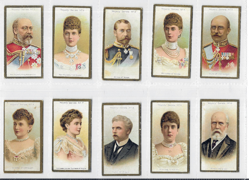 Taddy & Co Royalty Series 1903, the set of 25, #5 (Prince of Wales) with tone mark on back, #8 (Duke of Argyle) with a crease, others good. (25)