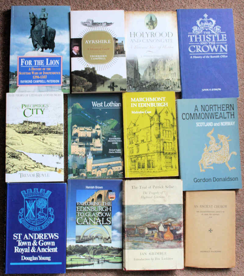 The Lothians Regional Survey and Plan HMSO 1966, 2 vols, in d/jkts; Innes Lectures on Scotch Legal Antiquites 1872; Maidment The Court of Session Garland 1888; Campbell & Smellie The Royal Society of Edinburgh 1983; and other Scottish history & culture, several Edinburgh related. Mostly VG/VF (31, plus pamphlet & a map).