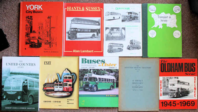 The Scottish Motor Traction Co.Ltd, A Short History of the Company 1905-1945; Dowding Red & White Services 1919-1949 in d/jkt; Boyle Buses in Ulster, Vol.1, 1935-1948; Cook & Shouler The United Counties Story 2006; and other bus company history. (16)