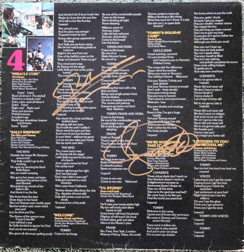 The Who: a signed LP Inner Sleeve signed by Pete Townshend and Roger Daltrey. Obtained in person by L. Evenson who worked at Virgin Radio Studios