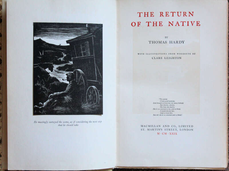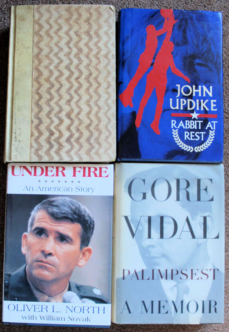 Thomas Hardy The Return of the Native Macmillan 1929, woodcuts by Clare Leighton and signed by her, in a darkened quarter vellum binding, VG internally; together with signed first editions of works by John Updike, Gore Vidal and Oliver North, all in d/jackets. (4)