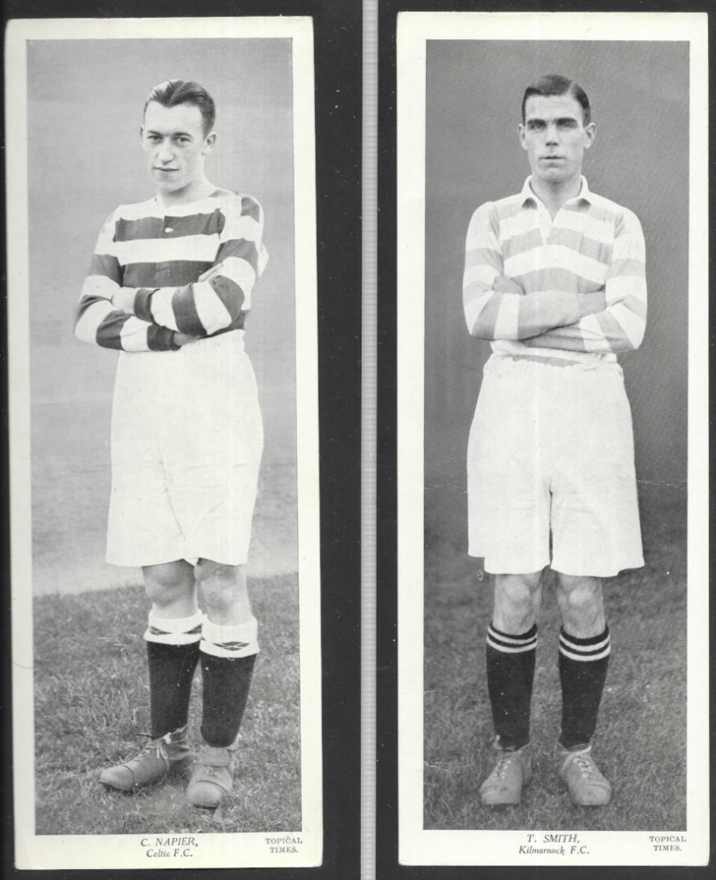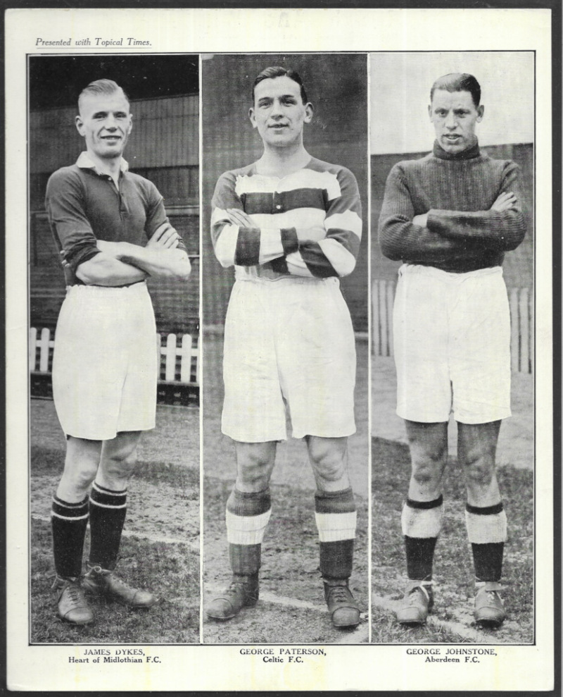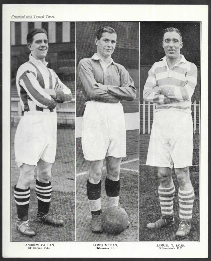 Topical Times Footballers, Panel Portraits 1930s, collection in modern album comprising set of 8 Triple Portraits of Scottish players, and b/w single portraits (42) including six Scottish players. Mostly good to fine. (48)