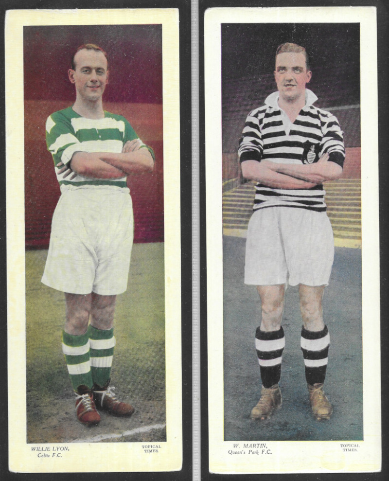 Topical Times Footballers, Panel Portraits 1930s, collection in modern album with duplication, comprising extra-large set of 8 Scottish players (one creased), set of 16 coloured Scottish players, and 81 b/w English players. Mostly good to fine. (105).