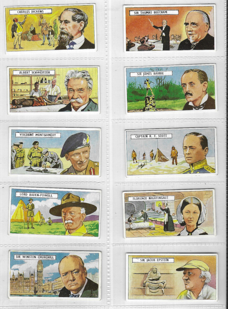 Trade Card sets in plastic sleeves, 1950s to 1990s, including Kent Constabulary Olympic Athletes, Goodies Indian Tribes, Tetley Tea British Birds, Reddings Cathedrals of Great Britain, Twinings Rare Stamps 1st series, Lyons Famous People, and Foster's Lager Sporting Greats. Fine throughout. (27 sets). Also three part-sets.