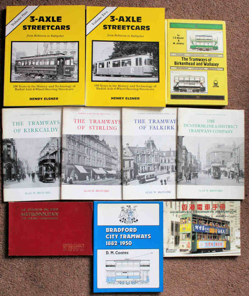 Tram history and nostalgia with several of Scottish interest, h/bk and s/bk. Includes pamphlets and some foreign titles. (59)