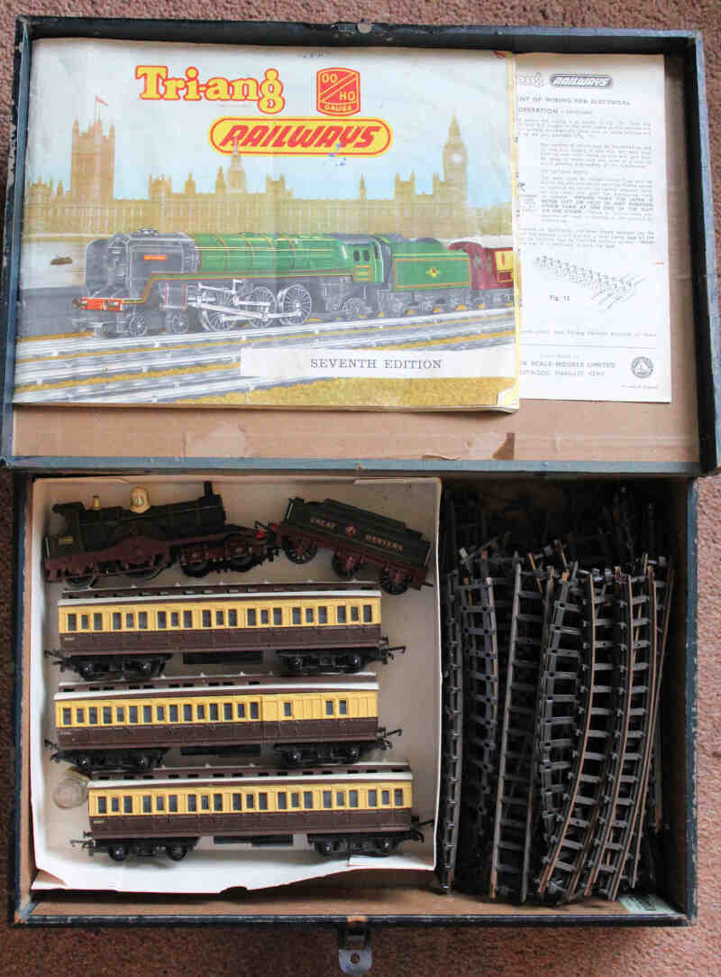 Tri-ang R.354 "Lord of the Isles" 4-2-2 locomotive and tender, ‘00’ gauge, with three coaches and qty. of track plus catalogue in storage box