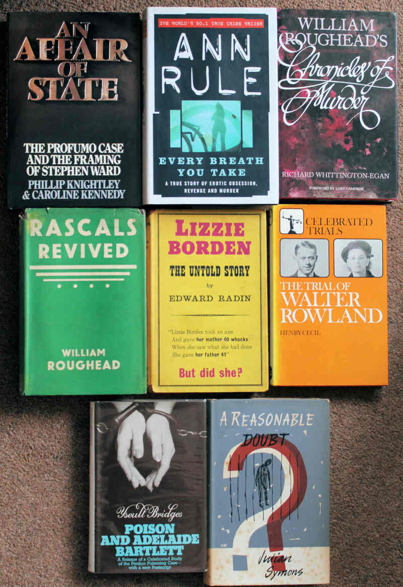 True Crime with many first editions including Max Beer The League on Trial, 1936, Molly Lefebure Evidence for the Crown, 1955 (foxing), and Peter Wright Spycatcher (first Australian edition). Fair to VF (19)