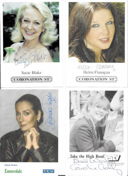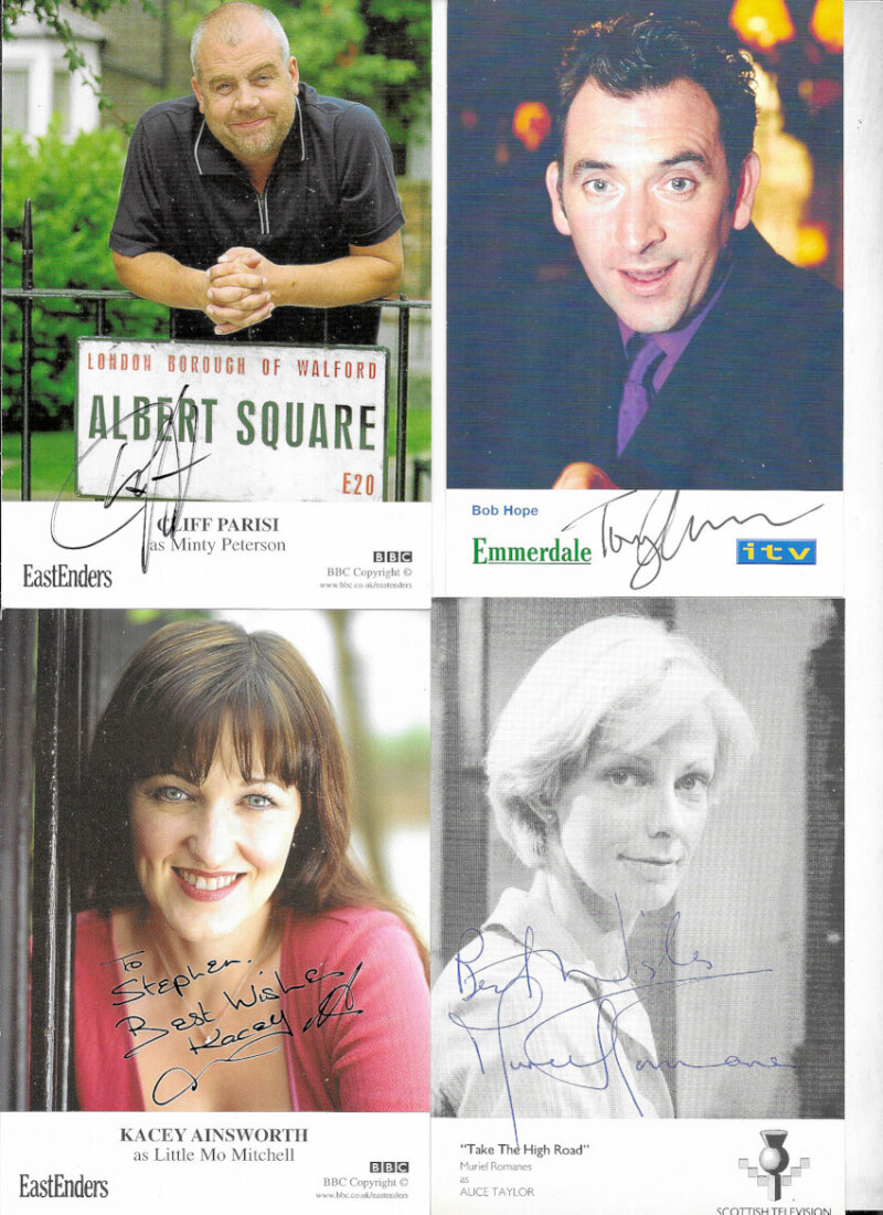TV Soap Stars, a collection of largely PC size autographed photos from Coronation Street, Eastenders, Emmerdale Farm and Take the High Road. (75)