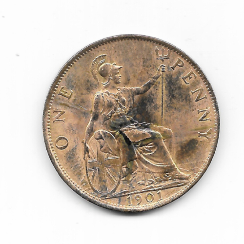 UK 1901 Queen Victoria Penny UNC, some darkening.