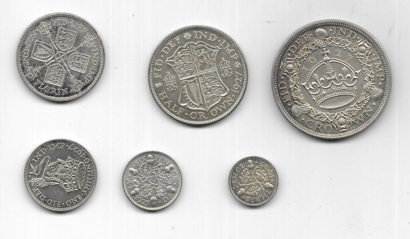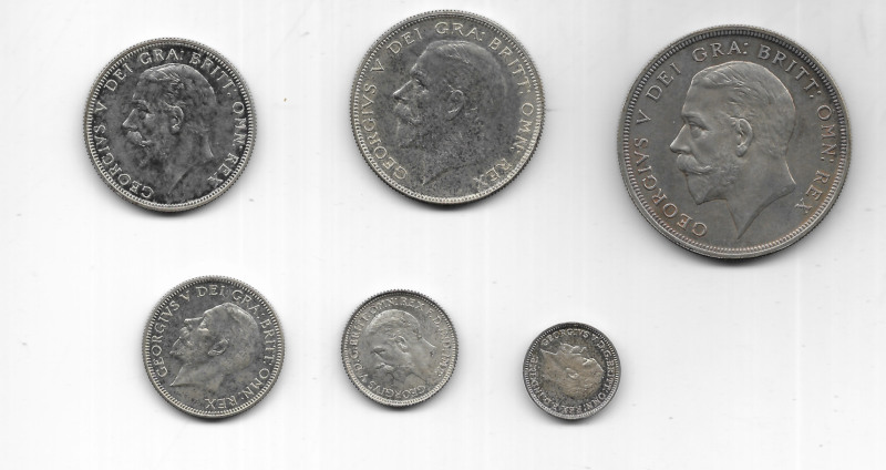UK 1927 Silver Proof 6-coin set in the issued case, Wreath Crown to threepence, Slightly tarnished.