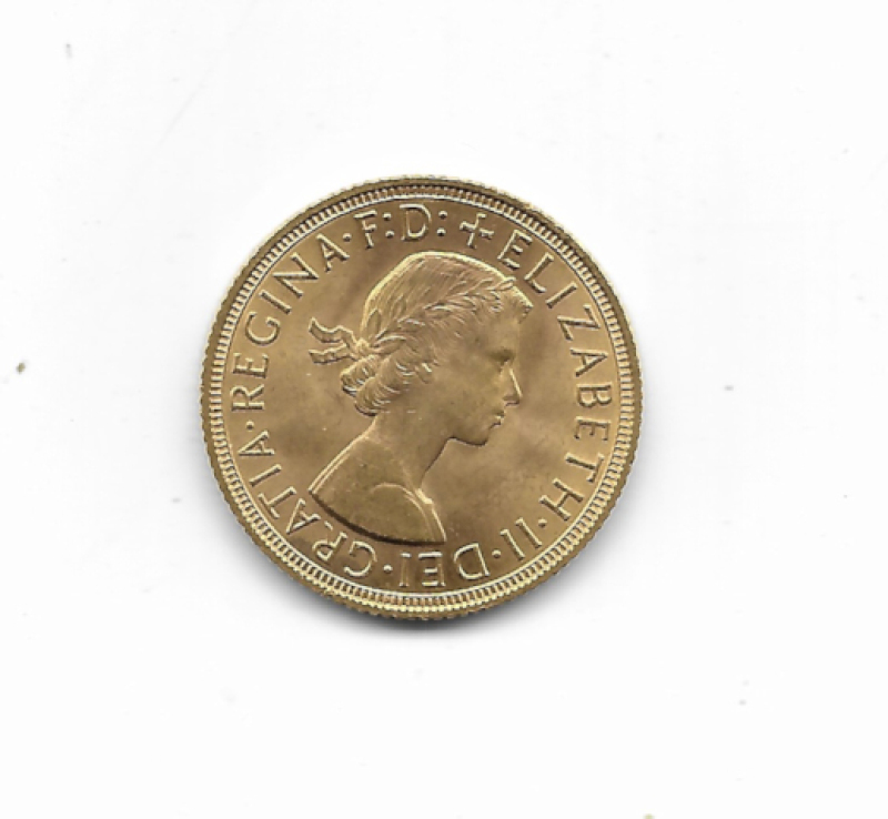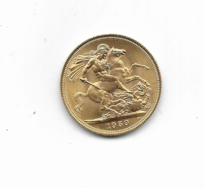 UK 1959 Sovereign, tiny nick in rim, near EF
