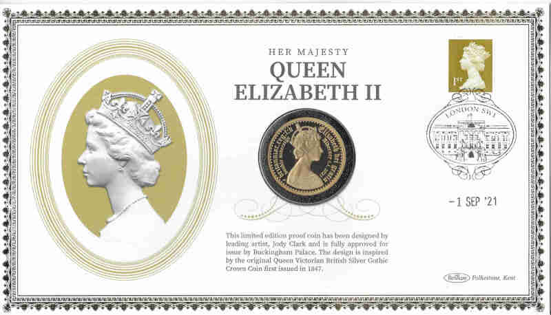 UK (Alderney) 2021 ‘Gothic' Gold Proof Double Sovereign, 22ct, inset in a related commemorative cover, with certificate. Coin weight 16grms