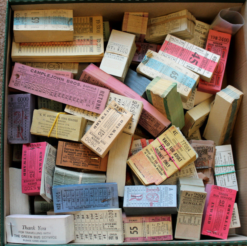 UK Bus Tickets 1950s to early 1970s, mainly in unused bundles, good variety of companies; also some used (mostly Premier Travel) and an old wooden ticket rack. (Many 100s)