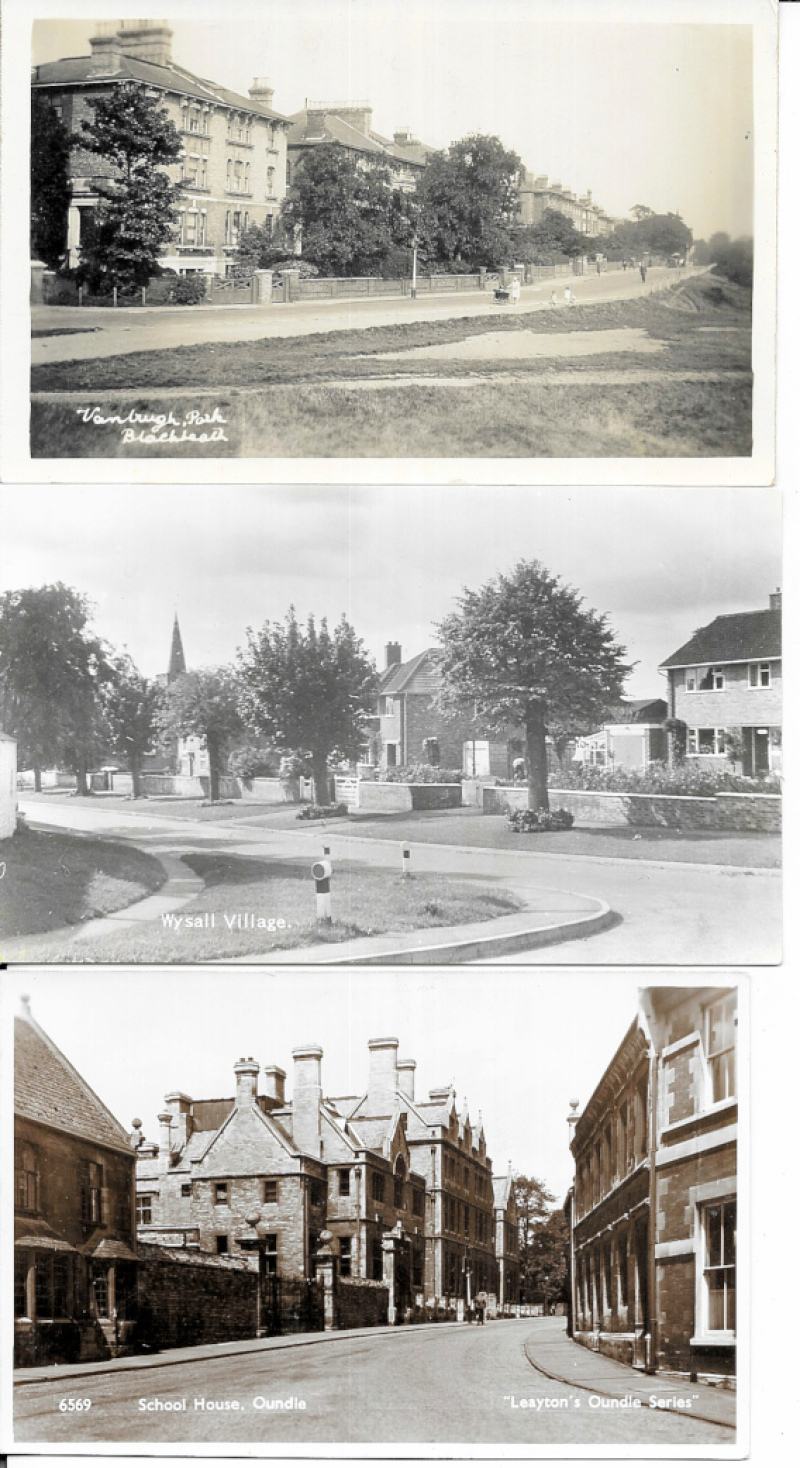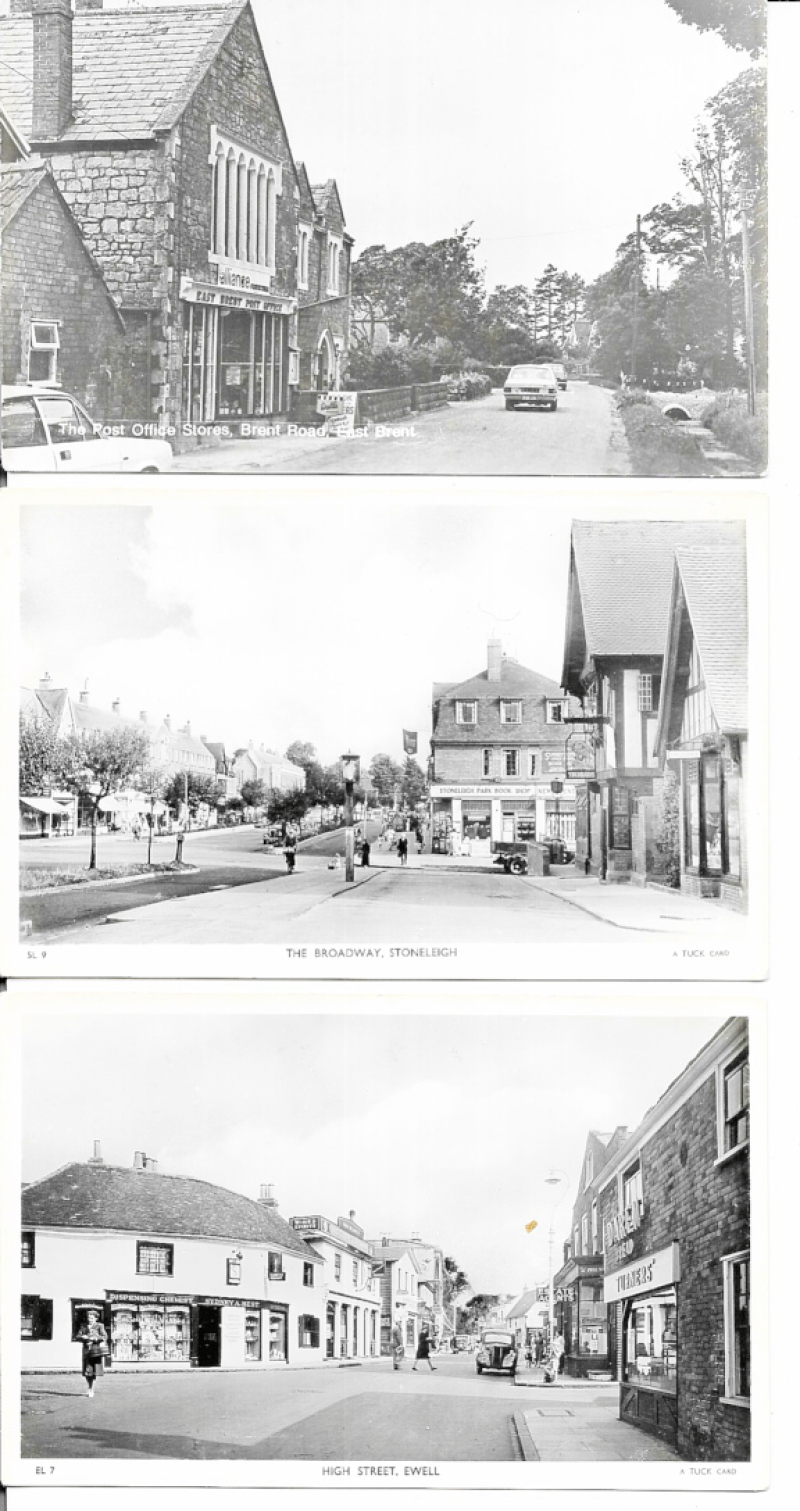 UK topography, 1920s to early 1960s, all b/w RPs, including street scenes of Blackheath, Tidworth, Wysall, Cumnor, Haworth, Oundle, Dufftown, East Brent (with Post Office), Bridgwater, Stoneleigh, Waddington, Ewell, and Newcastle Emlyn; 1947 Beaufort snow storm (2, plain backs); piers, war memorials, rural scenes, etc. Good to VF (104)