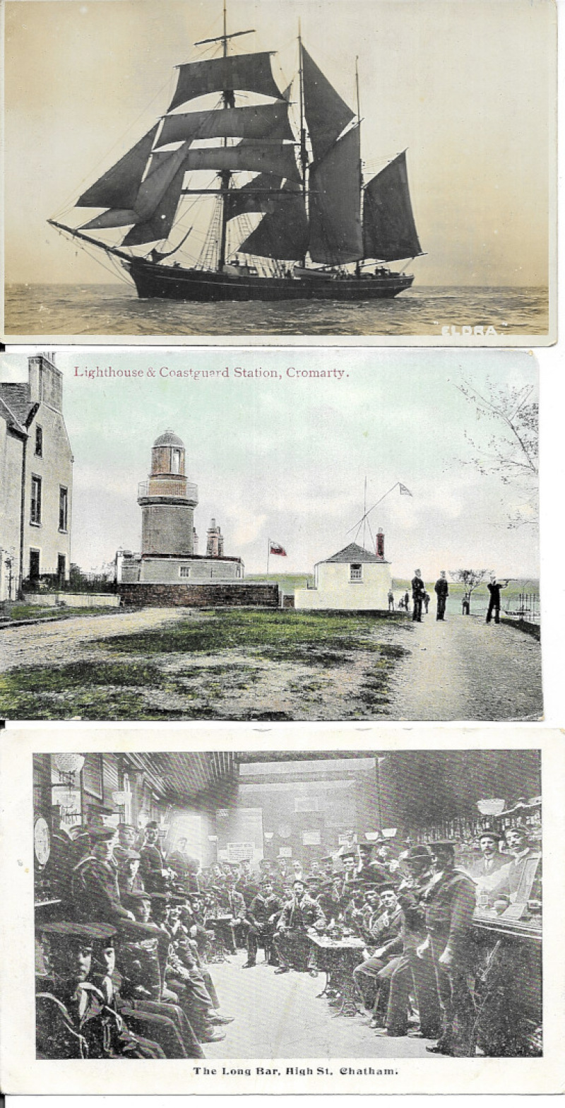 UK Topography & subjects, 1900s to 1950s, including Tuck's ‘Empire' dreadnoughts (5) and other Naval interest; Scotland notably Cromarty and Invergordon; RPs of sailing ships; some street scenes; actresses; RP of Guernsey Boy Scout; romance; art topography; etc. Mixed condition. (approx. 430)