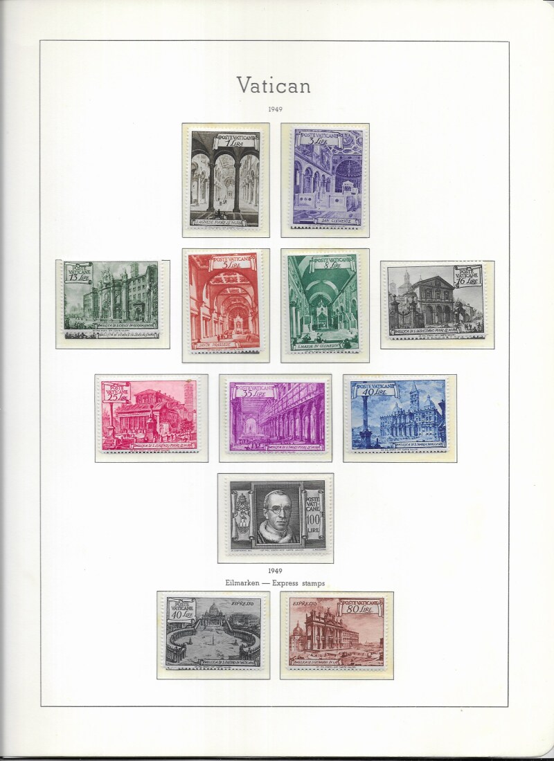 Vatican City 1936-76 largely UM collection in album including better Express, Airs, 1952 Centenary 50lire (2, one LM Mint), etc. Fairly complete for the period. Cat £1010