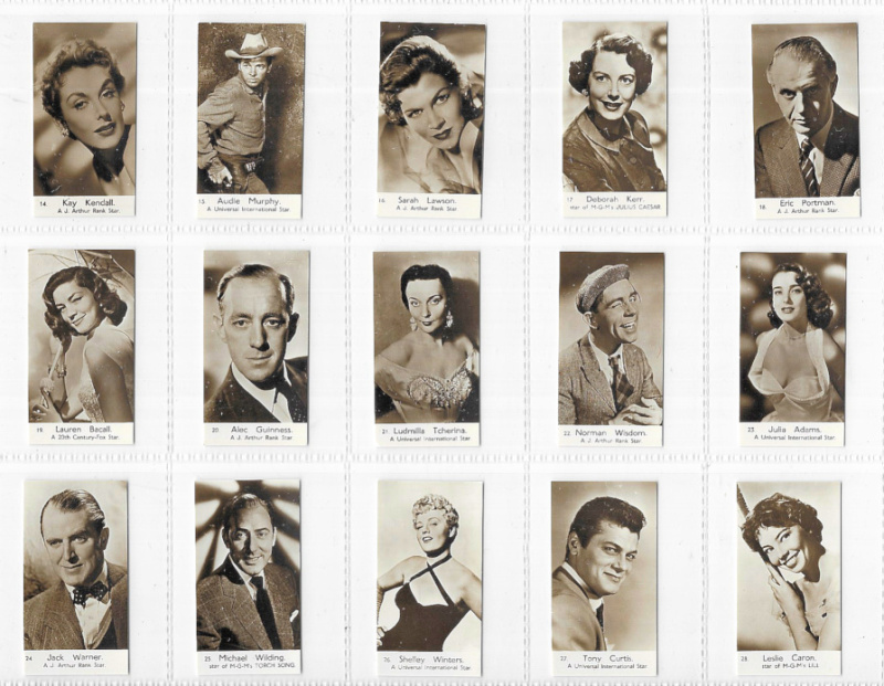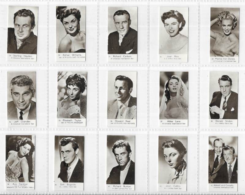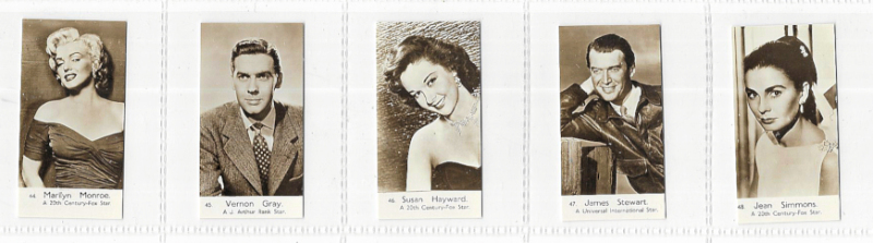 Watford Biscuit Co. "Famous Film Stars" 1954, ‘K’ size, the set of 48, including Marilyn Monroe, Alec Guinness, Richard Burton etc.
