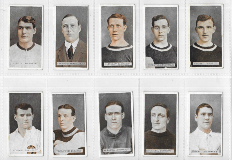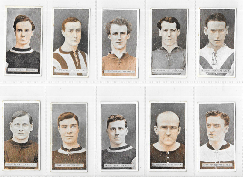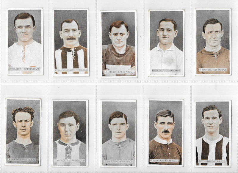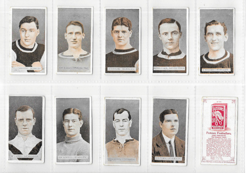 Wills (Scissors) Famous Footballers 1914, the set of 50, good to fine, #5 (Nesbit) chipped at one corner, #13, 17, and 40 with a slight crease, #43 (Taylor) slightly marked, a few with minor tone marks to backs; W.(‘Billy') Meredith VG. (50)