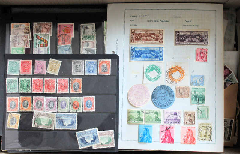 World accumulation on leaves, in stockbook & in bags, with useful British C/Wealth, Egypt, GB postage dues, and others. Includes an empty stockbook.