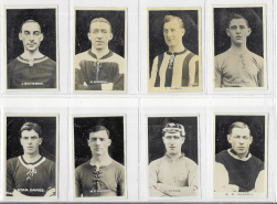 Football trade card sets comprising D.C. Thomson Footballers – Signed Real Photos 1923 (2 sets), Famous British Footballers (English) 1921, British Team of Footballers 1923, & Famous Footballers 1956; Boys' Magazine Famous Footballers Series; Amalgamated Press English League (Div.1) Footer Captains; Chums Football Teams 1922; and Magnet Library Football Teams 1922. The British Team of Footballers with slightly rounded corners o/w VG/VF. Cat (Murray) £570 (719)