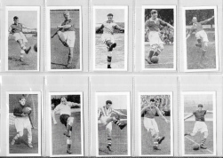 Football sets 1920s to 1950s in modern album, including Adolph Famous Footballers 1st and 2nd series; Player Association Cup Winners, Footballers 1928-29 and Footballers Caricatures by RIP; sets by Pals, Gem Library, Boys' Magazine and Boys' Friend; Ardath Famous Footballers; D.C. Thomson This Year's Top-Form Footballers; Churchman Association Footballers 1st & 2nd; Gallaher Famous Footballers (brown back), and Carreras Popular Footballers. Good to excellent, mostly VG or better. Cat (Murray) £1175. (530).