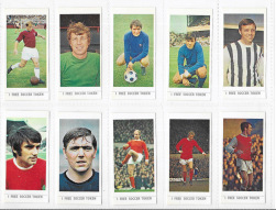 J. Lyons (Lyons Maid) Soccer Stars 1971, the set of 40, #5 (Jeff Astle) cut into border lower left, others excellent.