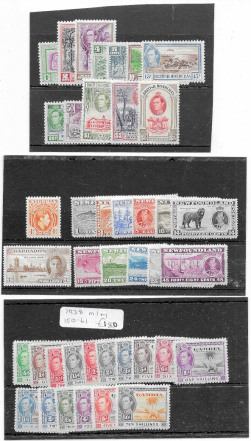 George VI Commonwealth mint ranges on leaves with good New Zealand including 1936-42 perf changes to 3s; Seychelles with scarce colours; useful Newfoundland; Nyasaland to 20s; Sarawak to $5; Somaliland to 5Rs (2); South Africa to 5s with good postage dues; Sudan including Officials; Swaziland to 2s6d with perf changes; British Virgin Is to £1, and various others. Many good items. Good to VF. Cat £4900 (Several 100s)