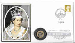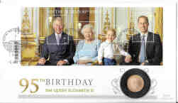 Solomon Islands 2021 Queen's 95th Birthday $10 22-carat Gold Proof, inset in a UK commemorative cover. Coin weight 8grms.