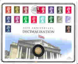 Tristan Da Cunha 2021 50th Anniversary of Decimalisation Gold Proof Sovereign, inset in a related UK commemorative cover, with certificate. Coin weight 8grms.