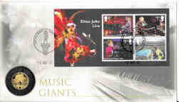 UK 2020 Elton John 25 Pounds Quarter Ounce Gold Proof, inset in a commemorative cover, with certificate. Coin weight 7.8grms
