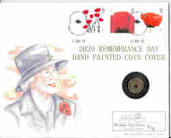 UK (Alderney) 2020 Remembrance Day One Pound Gold Proof, inset in a hand-painted commemorative cover, signed by the artist. No.8 of 15 produced. With certificate. Coin weight 8grms.