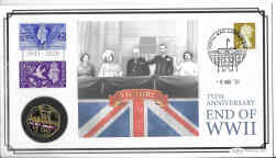 Gibraltar 2020 75th Anniversary of VE Day 50 pence Gold Proof, 22ct, inset in a related commemorative cover, with certificate. Coin weight 8grms