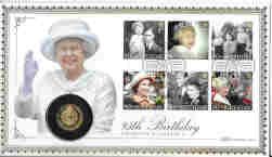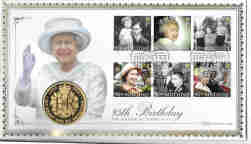 UK 2021 Queen's 95th Birthday Gold Proof, Quarter-Ounce, 24carat, inset in a related First Day Cover, with certificate. Coin weight 7.80grms